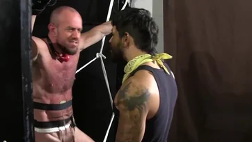 DILF stands exposed in bondage XXX and craves cock in the ass