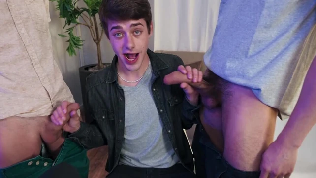 Petite nerdy lads are giving blowjobs in a wild foursome