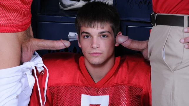 Twink plays with stepdad and his best buddy in marvelous gay threesome
